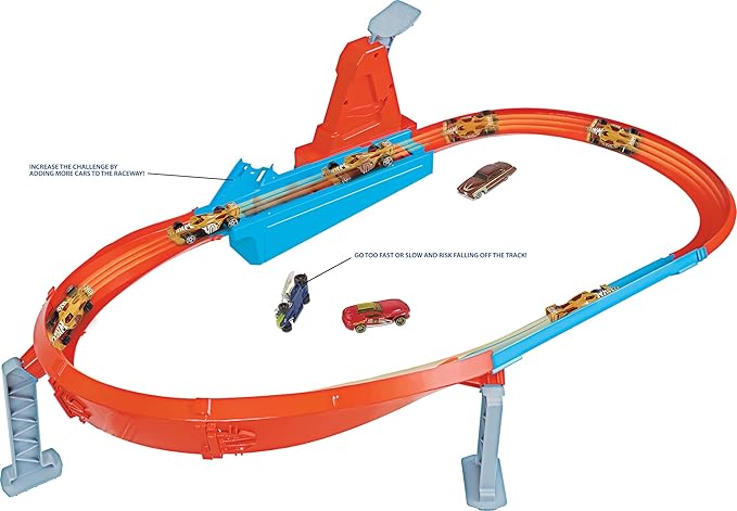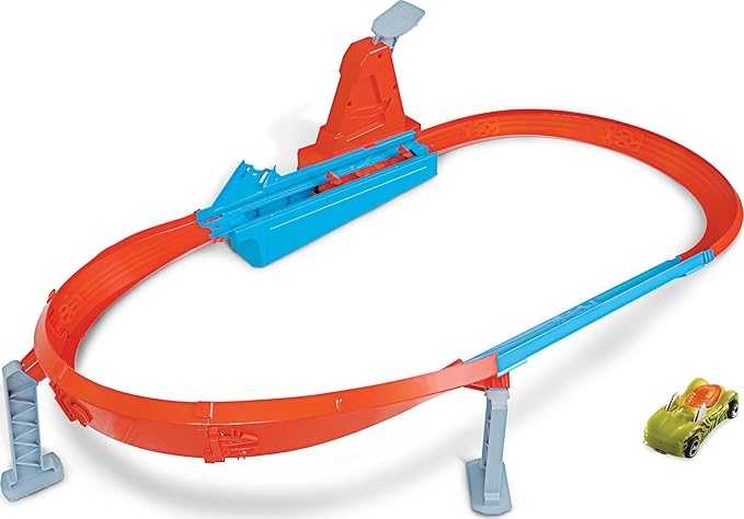 Affronta gli amici con la gamma di playset Campione di Velocità, per gare di performance d’eccellenza, sgommate e acrobazie. I bambini possono testare le loro abilità in 3 sfide che includono un circuito per le acrobazie, una drag race e una coraggiosa corsa in salita. Il tracciato Campione di Velocità™ è una drag race classica con un cancelletto di partenza straordinario. Tira la leva verso l’alto e rilasciala per far partire il conto alla rovescia. Quando i cancelli si aprono, inizia la corsa per far sventolare la bandiera del vincitore! Tutto ciò di cui i bambini hanno bisogno per le corse è incluso in questa confezione: pista arancione, corsa fianco a fianco e punti di lancio, più un veicolo Hot Wheels® in scala 1:64. Ogni playset si collega ad altri playset Hot Wheels® (in vendita separatamente) per costruire un mondo di piste sempre più epico.